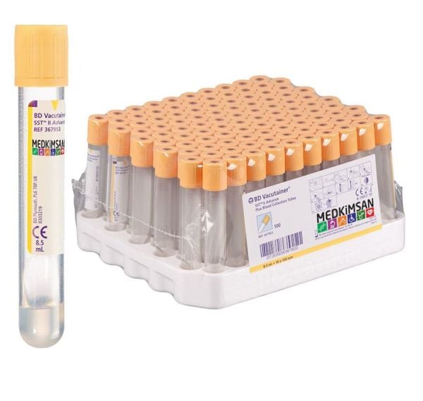 100 Adet Sarı Kapak Jelli Kan Alma Tüpü | 8.5 mL 16x100 mm | BD 367953 SST II Advance